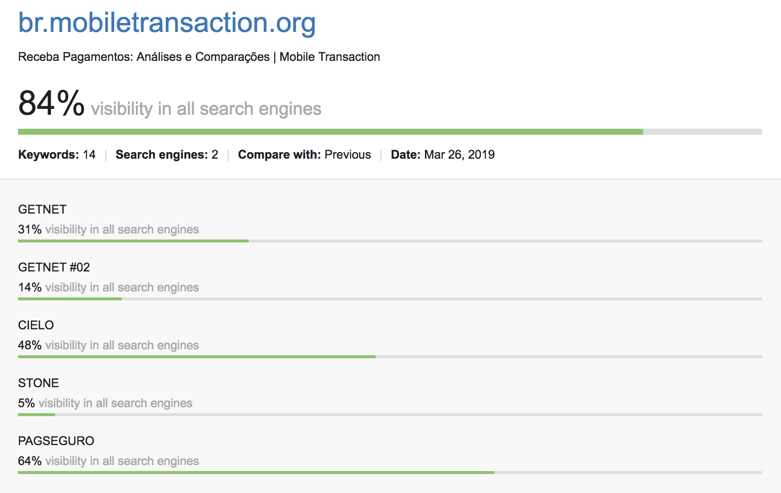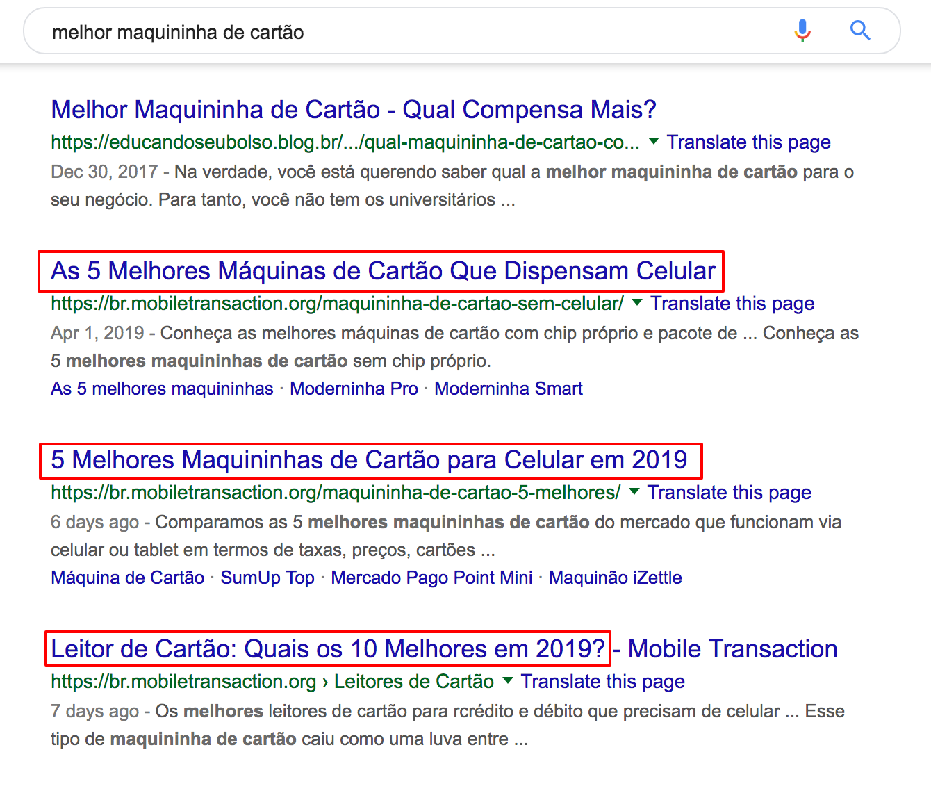 Esta é a fórmula que a br.mobiletransaction, utilizando-se de 264 artigos consegue gerar autoridade não apenas no Brasil mas nos outros 10 países que se posiciona, gerando tráfego, vendas e produzindo muita inteligência de mercado com os dados gerados através do tráfego orgânico. Cielo, Rede, Getnet e Moderninha estão equipadas com grandes profissionais de marketing e um grande investimento em mídia digital mas de longe, esta briga é vencida facilmente por este site estrangeiro que explorou uma oportunidade neglicenciada pelos grandes do mercado de maquininhas móveis.
