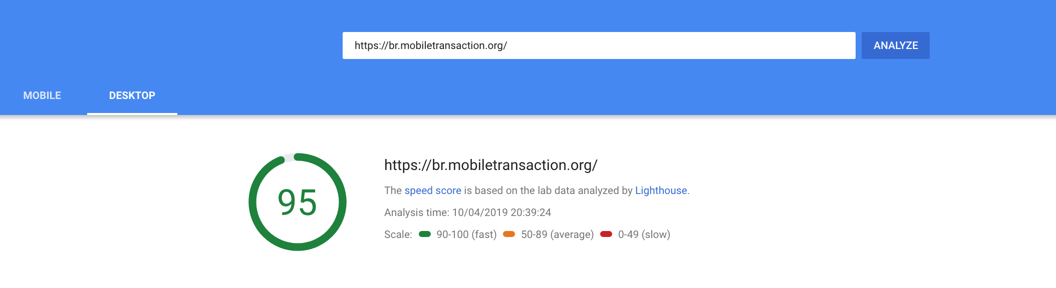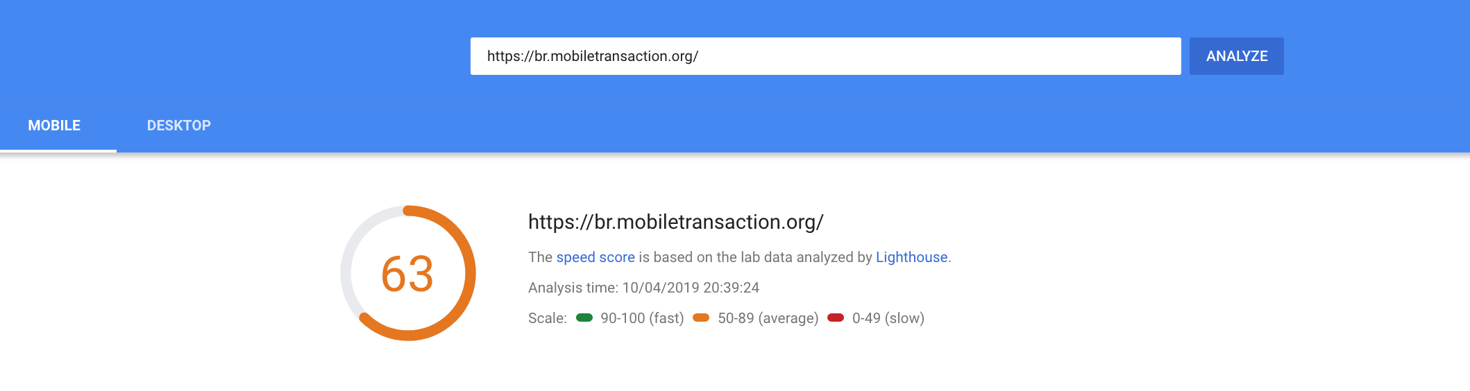Por mais que o Google tenha constantemente reforçado a importância da velocidade do site em sua versão móvel, a equipe do MobileTransaction não ligou muito para estas recomendações e continua no topo .