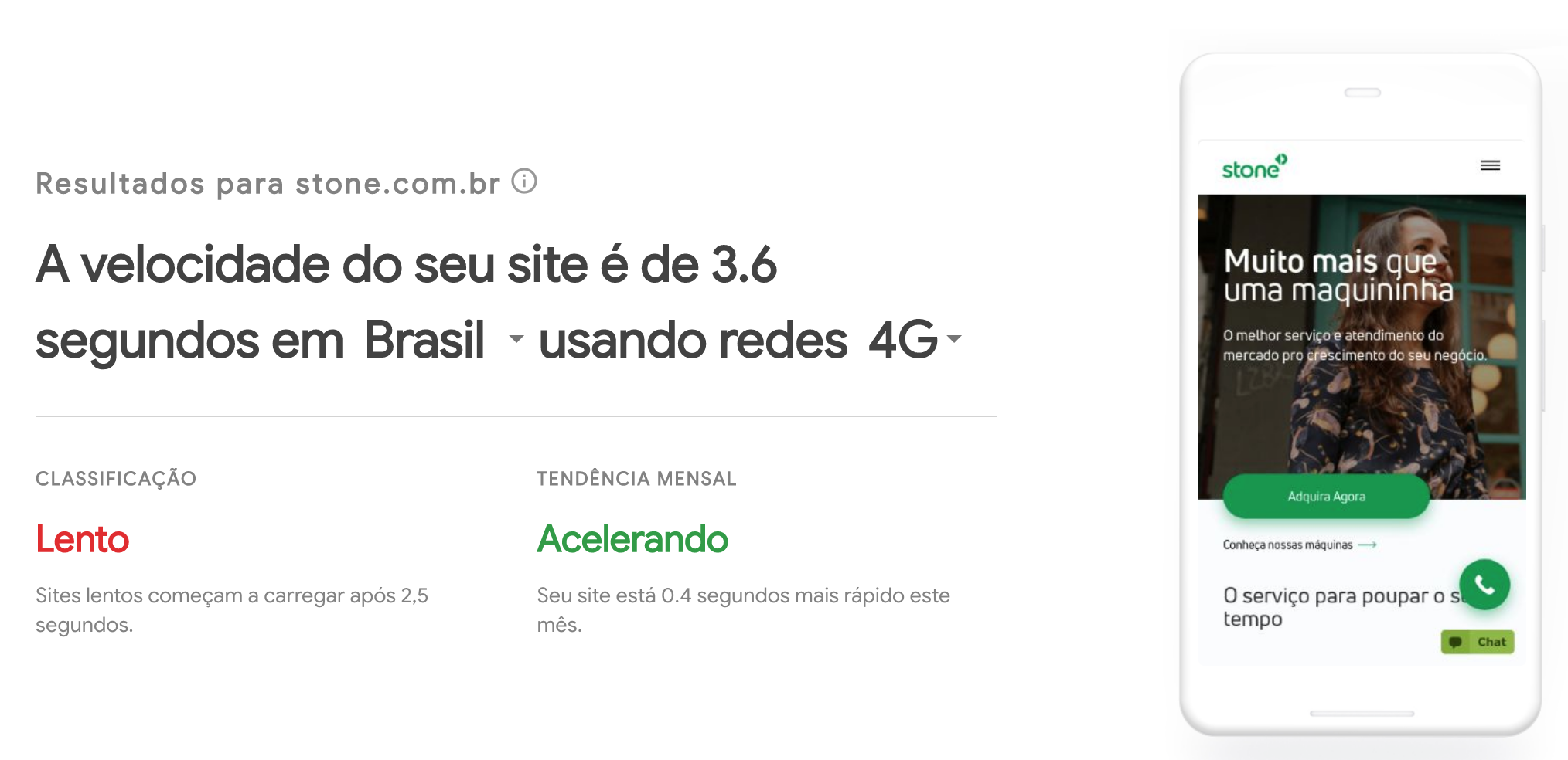 Além da estratégia de palavras e de conteúdo, é importante analisar o estado atual do site enquanto a velocidade de carregamento. Vejamos como estão os sites atualmente através da ferramenta Google Test My Site :